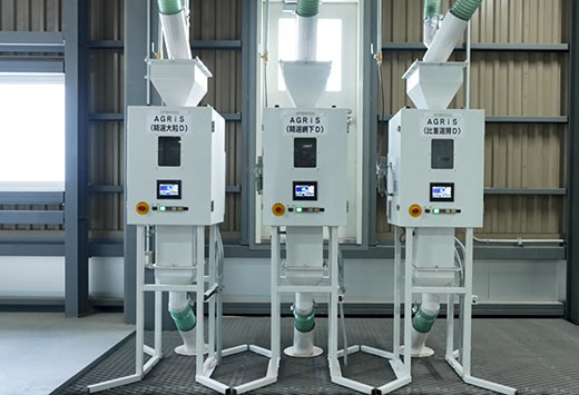 穀物流量計 AGRiS へデータを送る 「特徴選別機(レオソータ―)」稼働の 様子